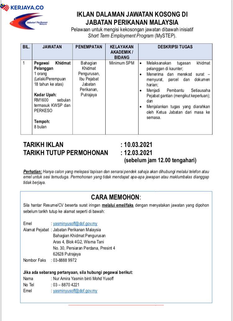Jawatan Kosong Jabatan Perikanan Malaysia Like serta Ikut Facebook Kami, follow Chanel WhatsApp Jawatan Kosong & Telegram Portal SPA9 untuk capaian pantas kekosongan jawatan daripada kami sekarang.