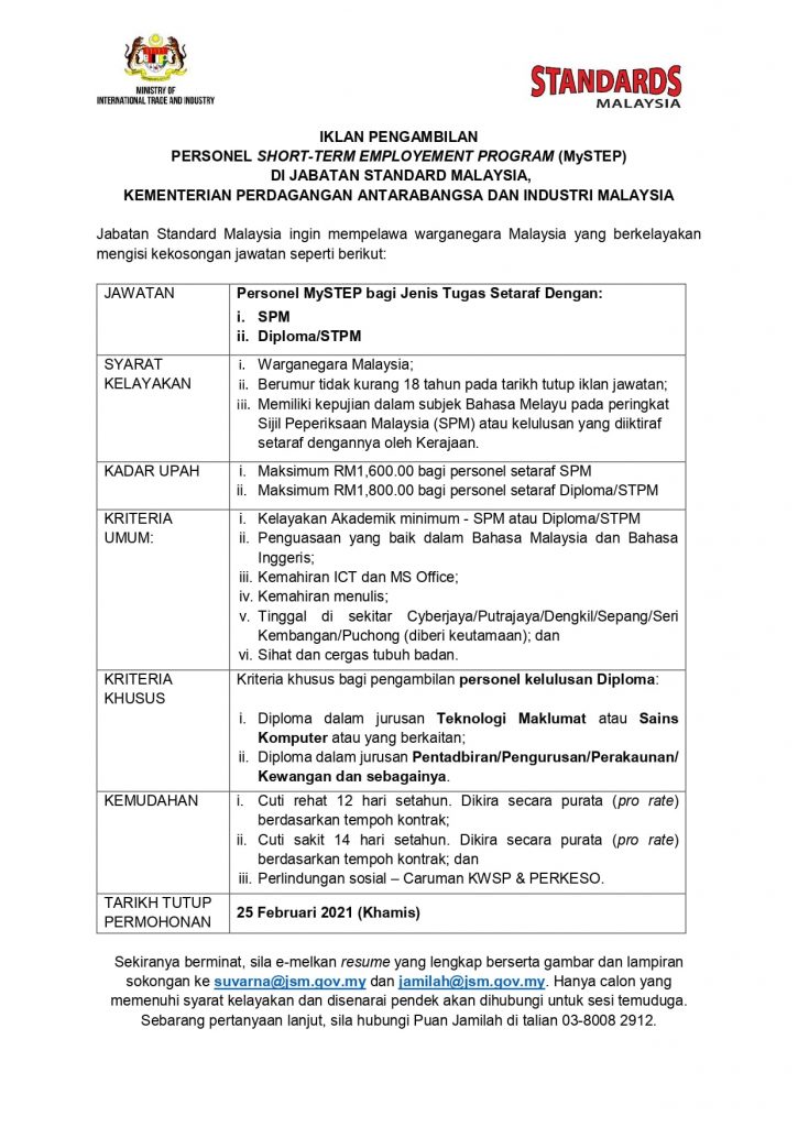 Jawatan Kosong Jabatan Standard Malaysia Like serta Ikut Facebook Kami, follow Chanel WhatsApp Jawatan Kosong & Telegram Portal SPA9 untuk capaian pantas kekosongan jawatan daripada kami sekarang.