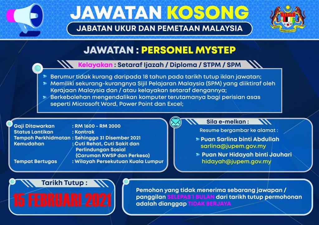 Jawatan Kosong Jabatan Ukur Dan Pemetaan Malaysia Like serta Ikut Facebook Kami, follow Chanel WhatsApp Jawatan Kosong & Telegram Portal SPA9 untuk capaian pantas kekosongan jawatan daripada kami sekarang.