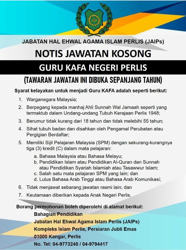 Jawatan Kosong Jabatan Hal Ehwal Agama Islam Perlis (JAIPs)