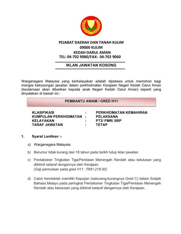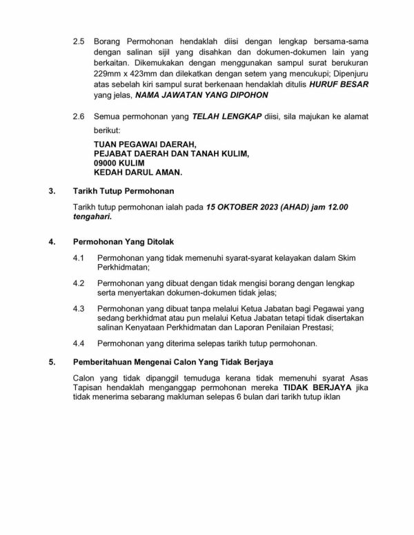 Jawatan Kosong Pejabat Daerah Dan Tanah Kulim Like serta Ikut Facebook Kami, follow Chanel WhatsApp Jawatan Kosong & Telegram Portal SPA9 untuk capaian pantas kekosongan jawatan daripada kami sekarang. Klik Jawatan Disini Borang Jawatan