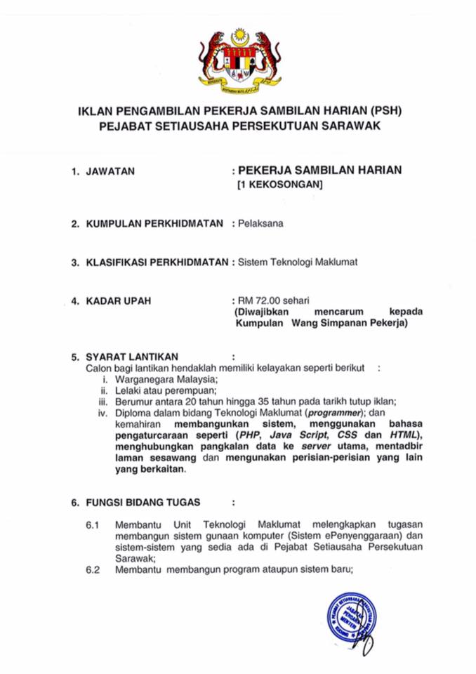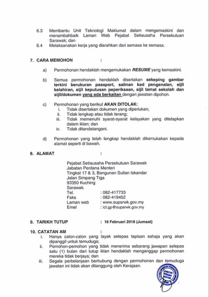 Jawatan Kosong Pejabat Setiausaha Persekutuan Sarawak Like serta Ikut Facebook Kami, follow Chanel WhatsApp Jawatan Kosong & Telegram Portal SPA9 untuk capaian pantas kekosongan jawatan daripada kami sekarang.