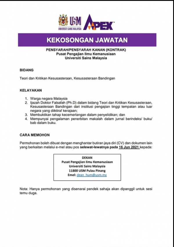 Jawatan Kosong Universiti Sains Malaysia Like serta Ikut Facebook Kami, follow Chanel WhatsApp Jawatan Kosong & Telegram Portal SPA9 untuk capaian pantas kekosongan jawatan daripada kami sekarang.