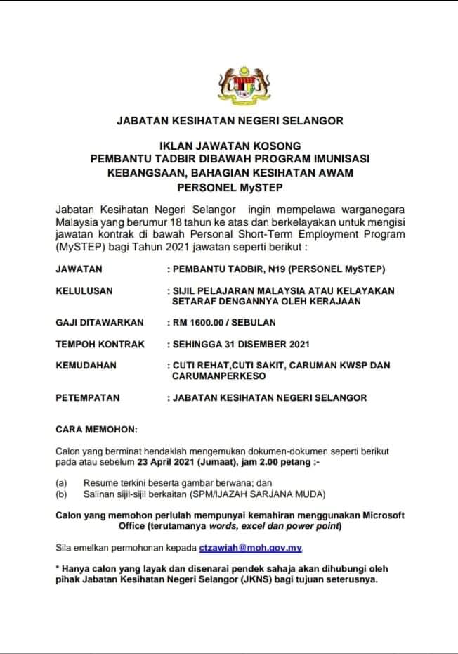 Jawatan Kosong Jabatan Kesihatan Negeri Selangor