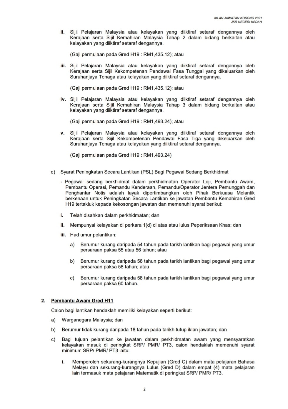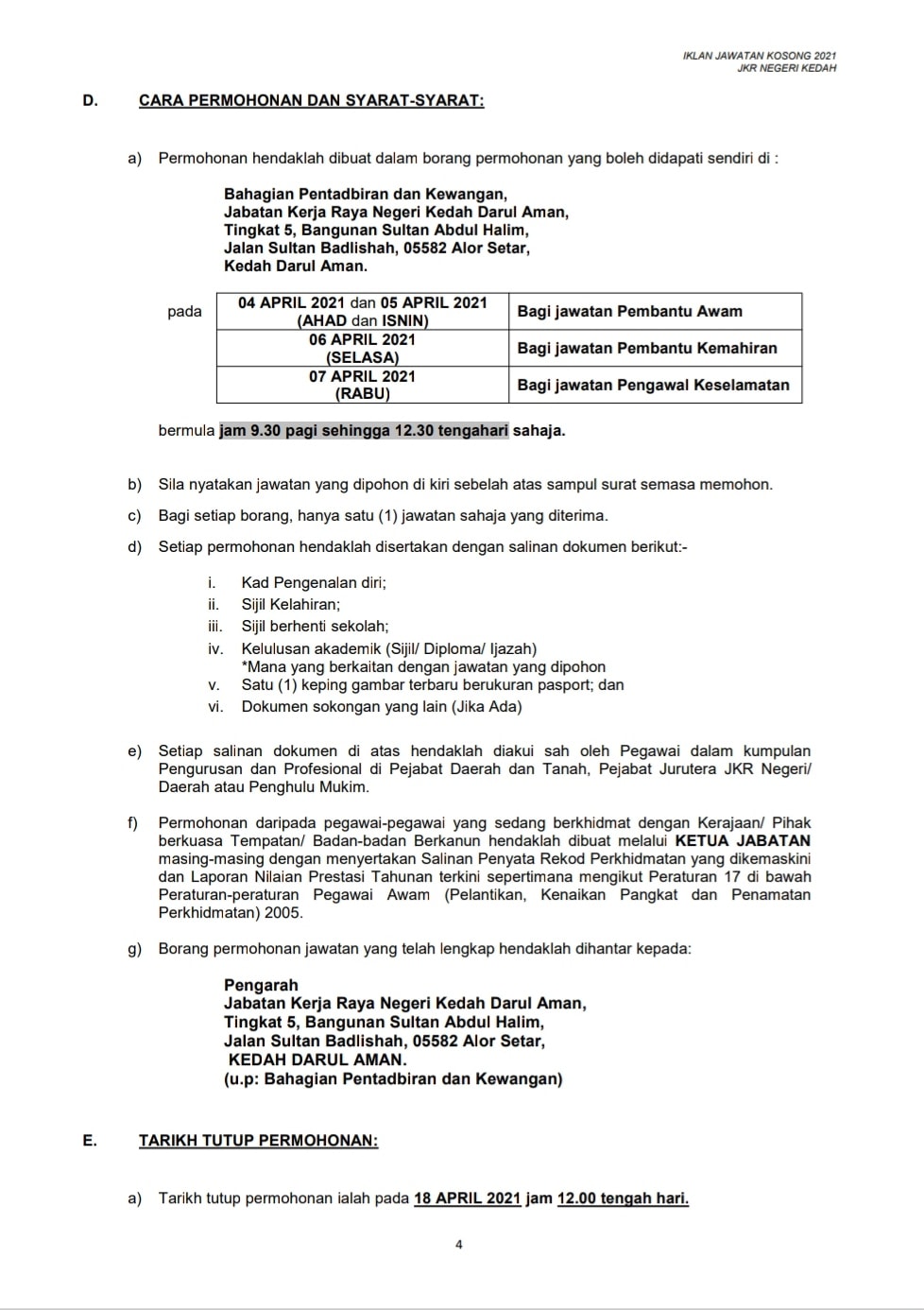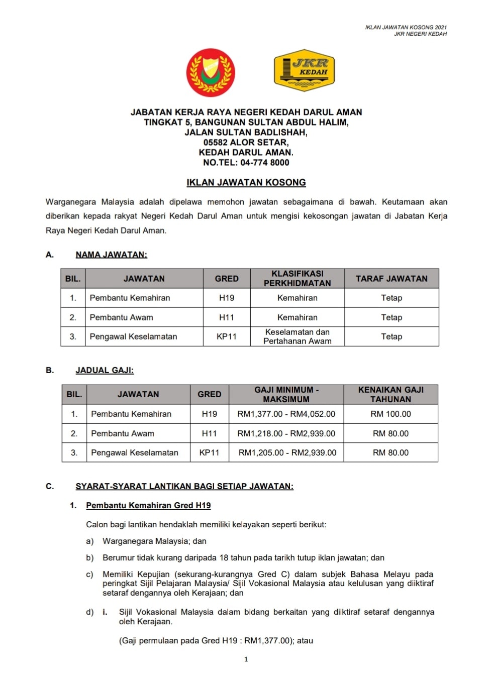 Jawatan Kosong Jabatan Kerja Raya Negeri Kedah