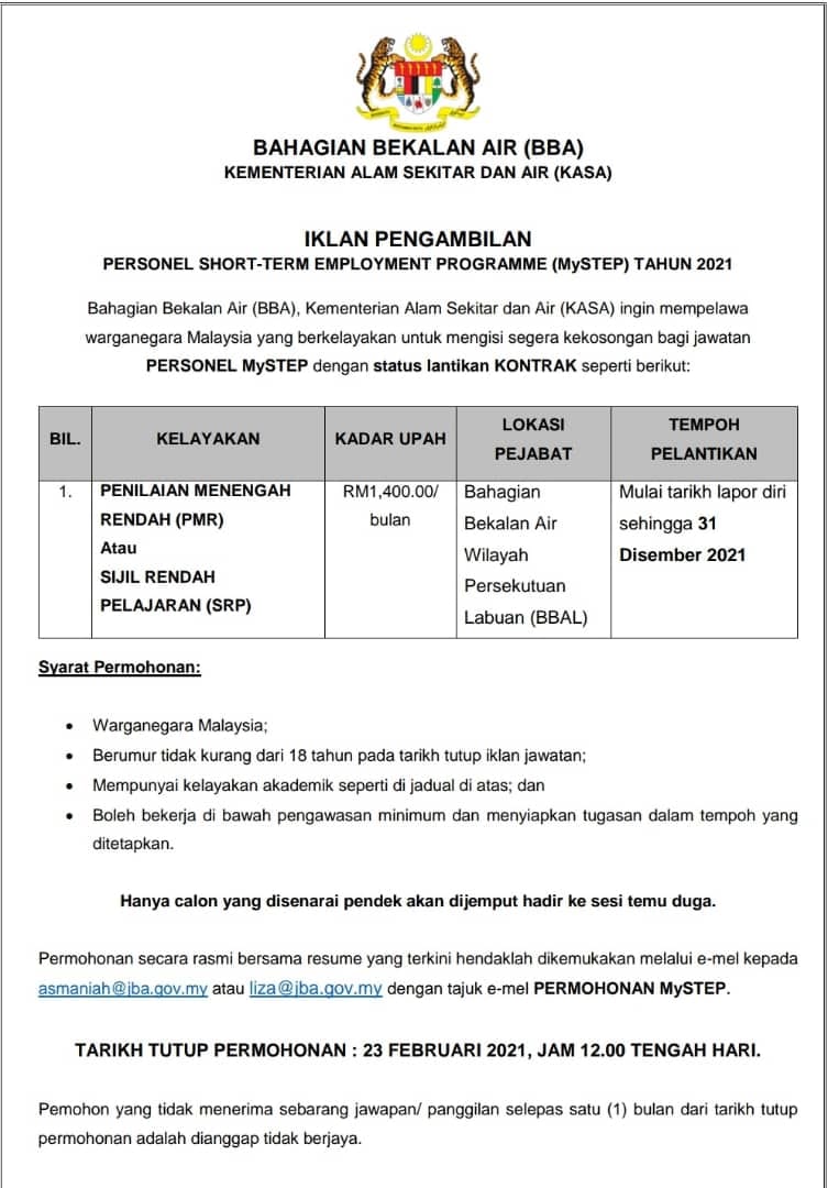 Jawatan Kosong Kementerian Alam Sekitar Dan Air (KASA)