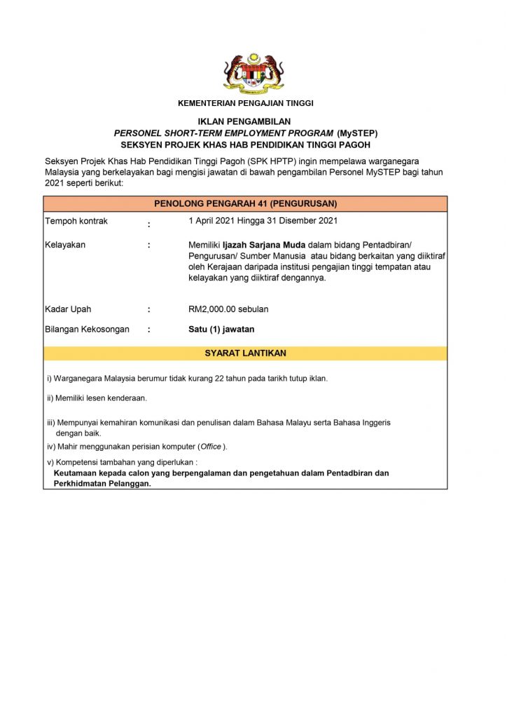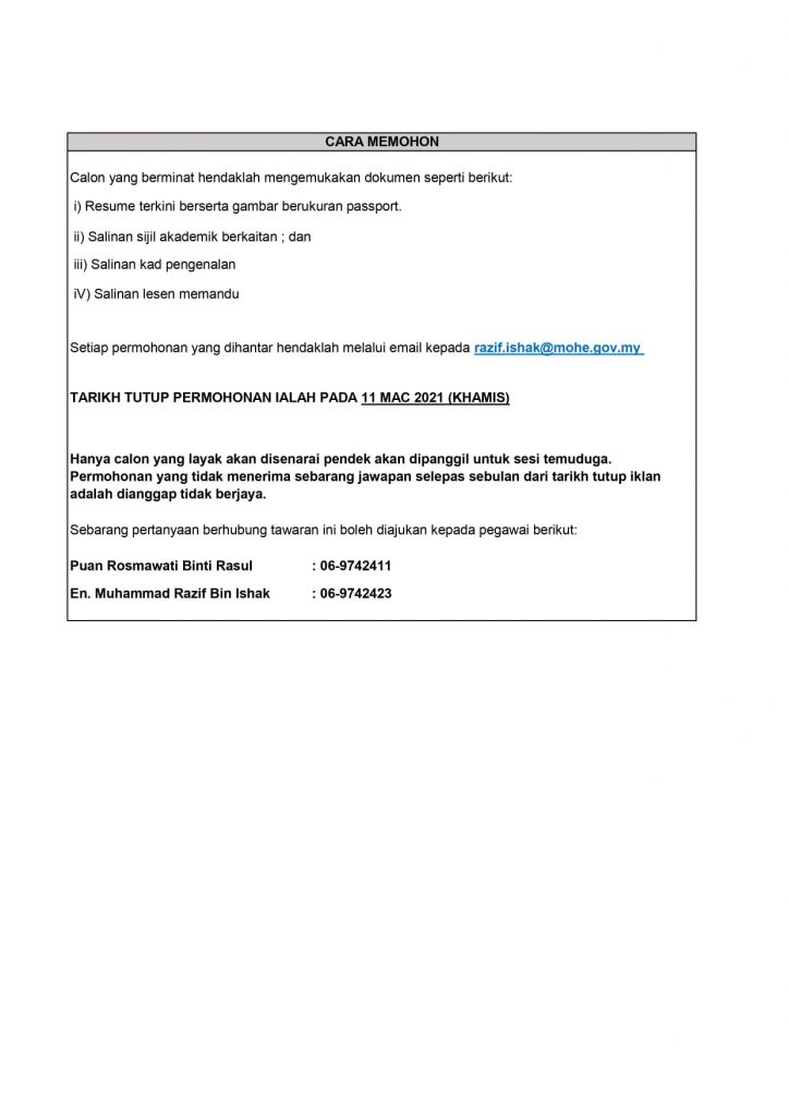 Jawatan Kosong Kementerian Pengajian Tinggi Like serta Ikut Facebook Kami, follow Chanel WhatsApp Jawatan Kosong & Telegram Portal SPA9 untuk capaian pantas kekosongan jawatan daripada kami sekarang.