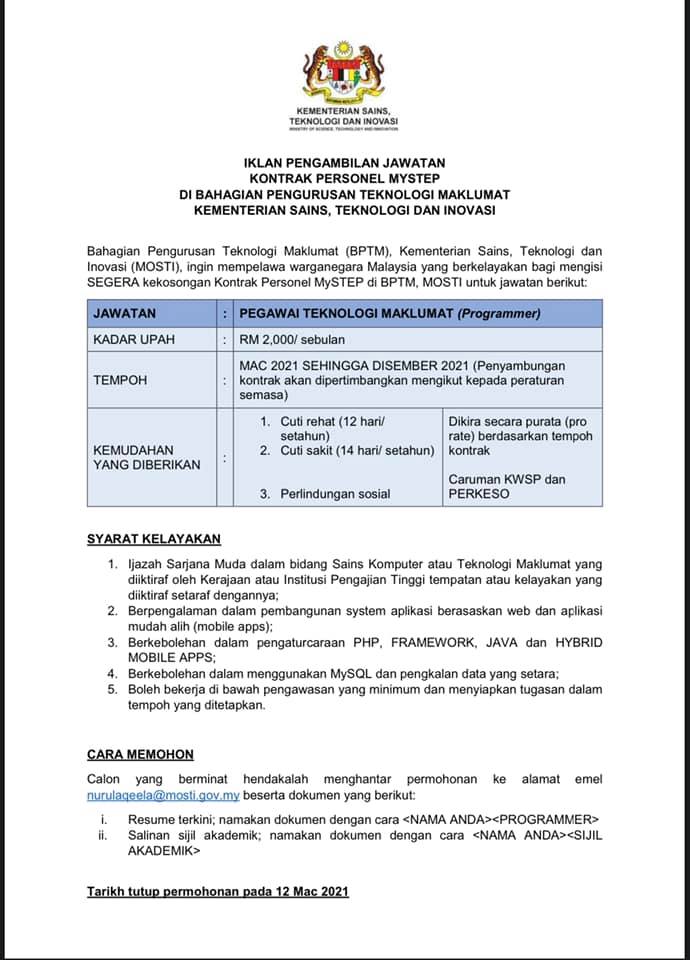 Utama›Jawatan›Jawatan Kosong Kementerian Sains, Teknologi Dan Inovasi Jawatan Kosong Kementerian Sains, Teknologi Dan Inovasi Like serta Ikut Facebook Kami, follow Chanel WhatsApp Jawatan Kosong & Telegram Portal SPA9 untuk capaian pantas kekosongan jawatan daripada kami sekarang.