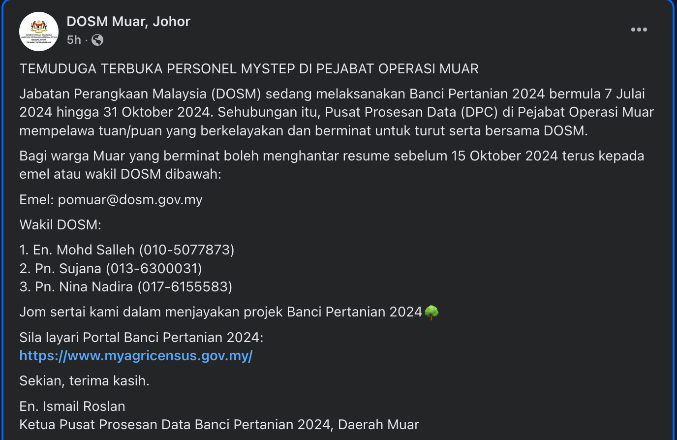 Kini Iklan Jawatan Jabatan Perangkaan Malaysia (DOSM) Like serta Ikut Facebook Kami, follow Chanel WhatsApp Jawatan Kosong & Telegram Portal SPA9 untuk capaian pantas kekosongan jawatan daripada kami sekarang.