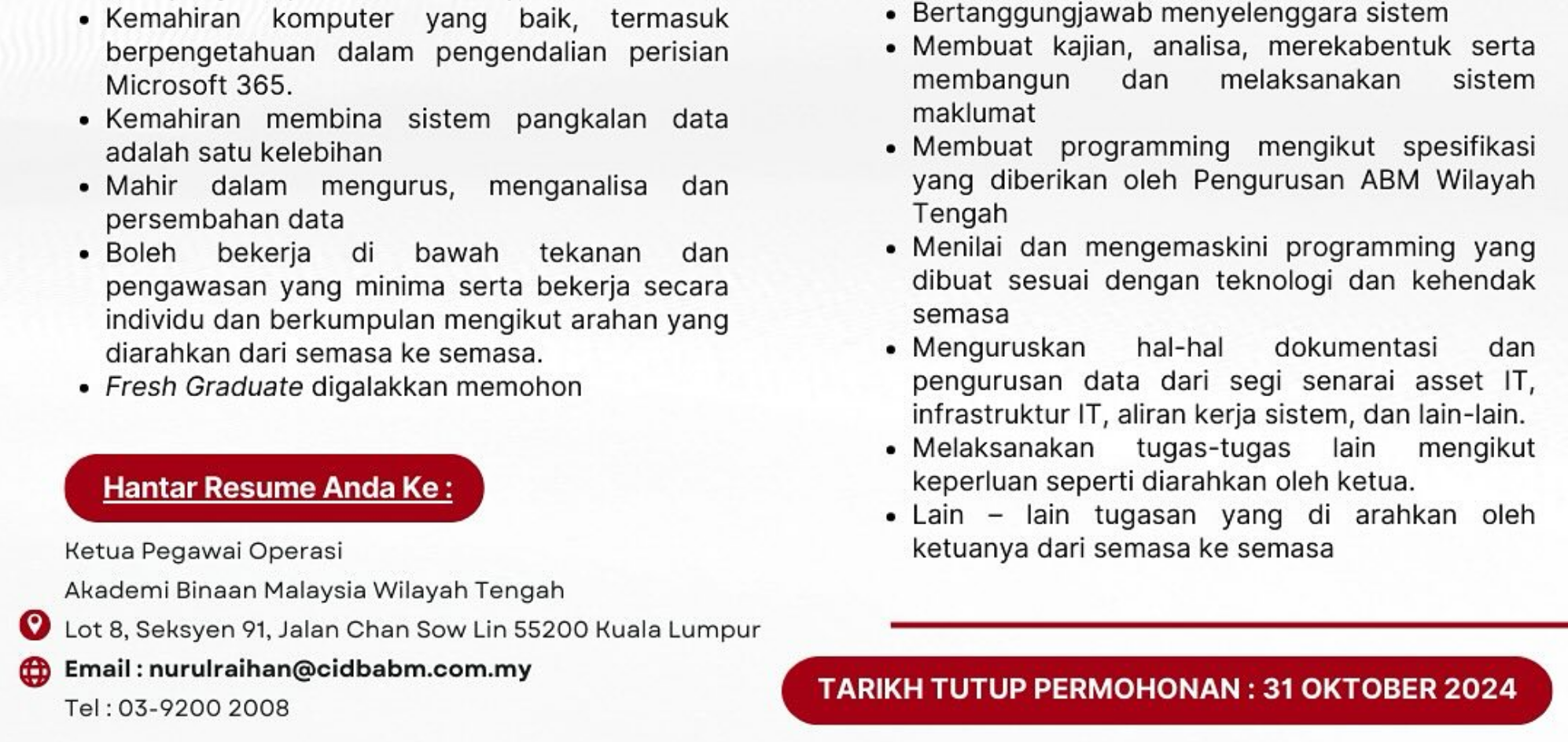 Kini Iklan Jawatan Kosong Akademi Binaan Malaysia (ABM) Like serta Ikut Facebook Kami, follow Chanel WhatsApp Jawatan Kosong & Telegram Portal SPA9 untuk capaian pantas kekosongan jawatan daripada kami sekarang. Klik Jawatan Disini