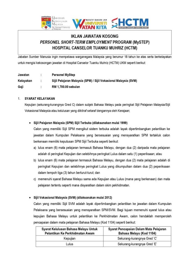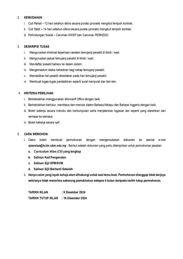 Kini Iklan Jawatan Kosong Hospital Canselor Tuanku Muhriz UKM Like serta Ikut Facebook Kami, follow Chanel WhatsApp Jawatan Kosong & Telegram Portal SPA9 untuk capaian pantas kekosongan jawatan daripada kami sekarang. Klik Iklan Jawatan