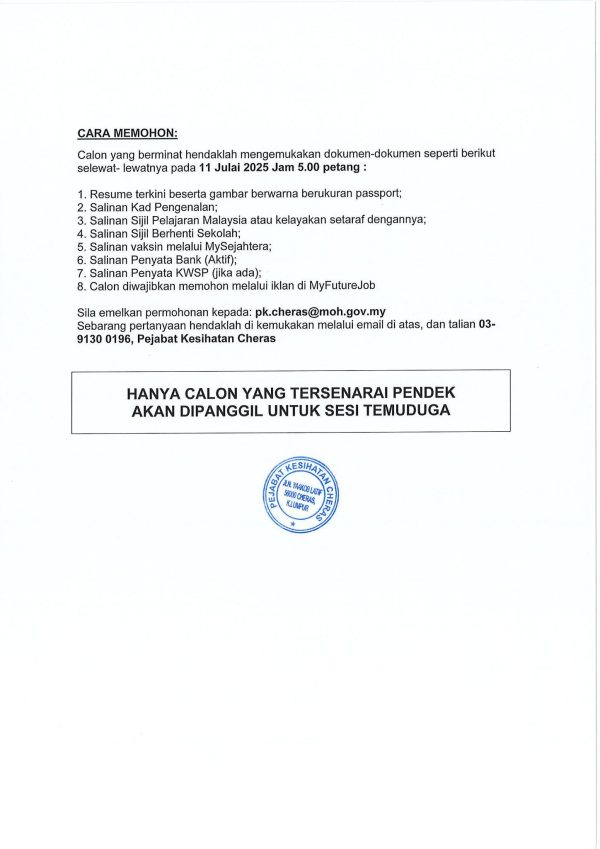 Kini Iklan Jawatan Kosong Kini Jabatan Kesihatan Wilayah Persekutuan Kuala Lumpur Dan Putrajaya