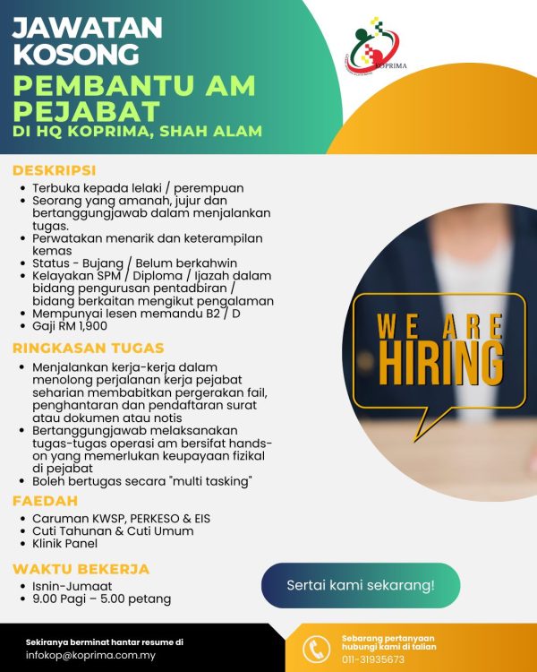 Kini Iklan Jawatan Kosong Koperasi Imigresen Malaysia Berhad KOPRIMA Like serta Ikut Facebook Kami, follow Chanel WhatsApp Jawatan Kosong & Telegram Portal SPA9 untuk capaian pantas kekosongan jawatan daripada kami sekarang. Klik Iklan Jawatan