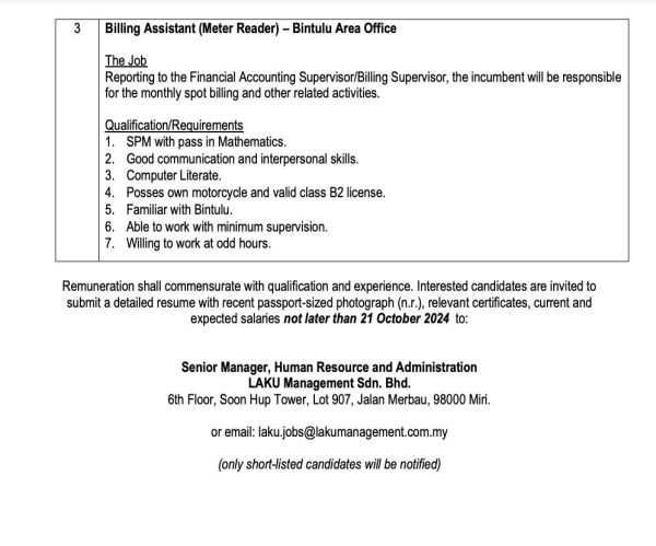 Kini Iklan Jawatan Kosong LAKU Management Sdn Bhd Klik Jawatan Disini Like serta Ikut Facebook Kami, follow Chanel WhatsApp Jawatan Kosong & Telegram Portal SPA9 untuk capaian pantas kekosongan jawatan daripada kami sekarang.