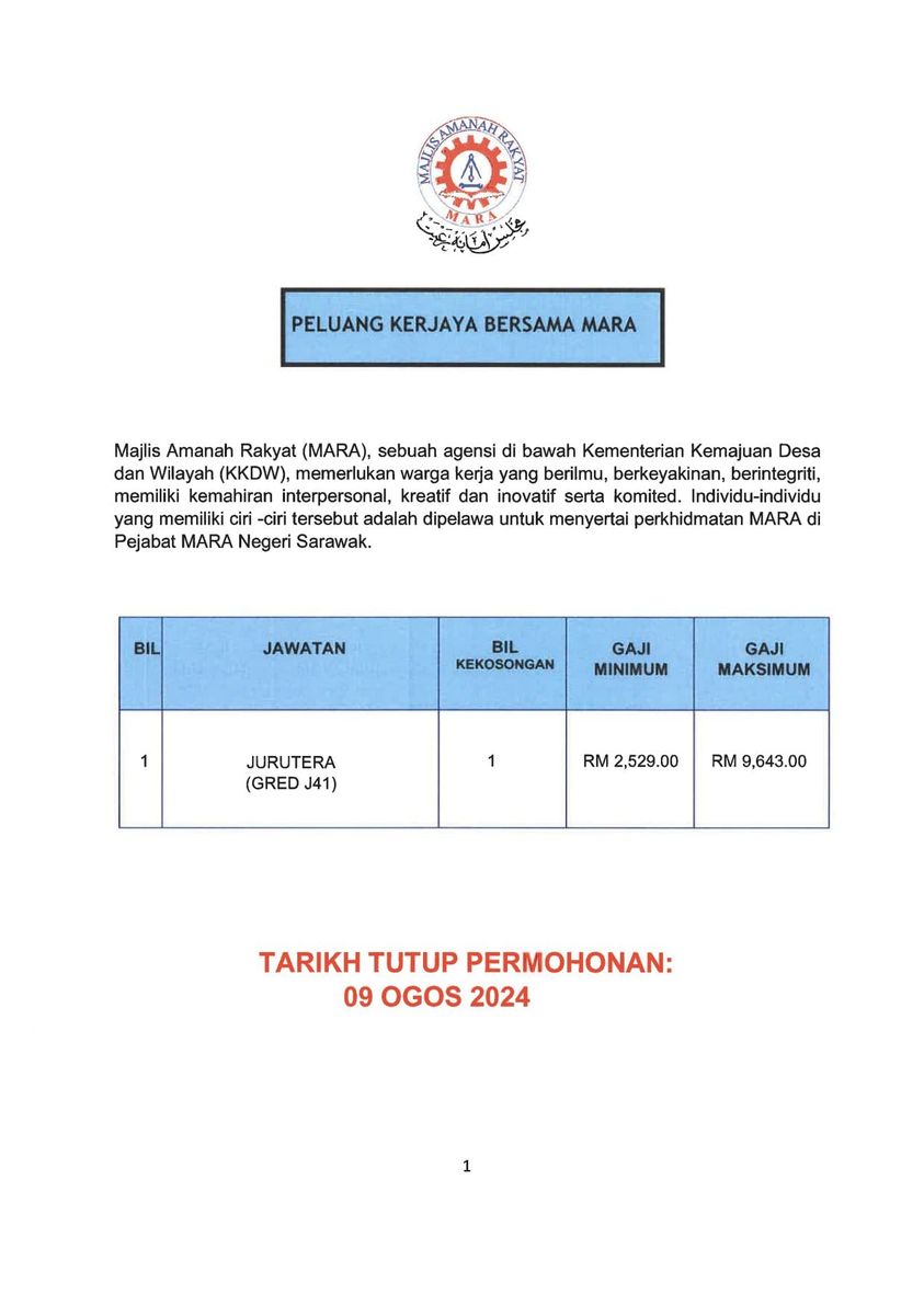 Kini Iklan Jawatan Kosong Majlis Amanah Rakyat (MARA) Like serta Ikut Facebook Kami, follow Chanel WhatsApp Jawatan Kosong & Telegram Portal SPA9 untuk capaian pantas kekosongan jawatan daripada kami sekarang. Klik Jawatan Disini