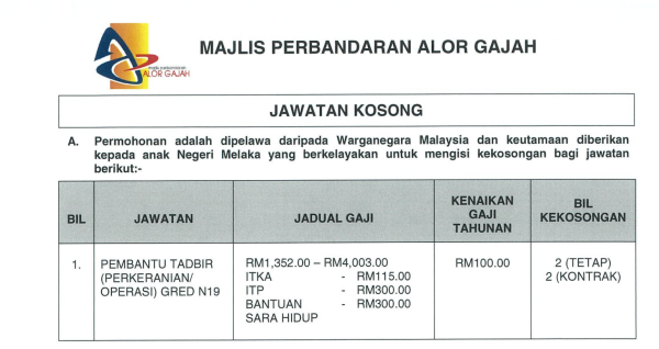 Kini Iklan Jawatan Kosong Majlis Perbandaran Alor Gajah (MPAG) Like serta Ikut Facebook Kami, follow Chanel WhatsApp Jawatan Kosong & Telegram Portal SPA9 untuk capaian pantas kekosongan jawatan daripada kami sekarang. Klik Jawatan Disini