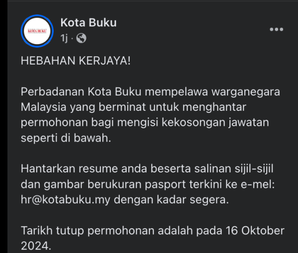 Kini Iklan Jawatan Kosong Perbadanan Kota Buku Like serta Ikut Facebook Kami, follow Chanel WhatsApp Jawatan Kosong & Telegram Portal SPA9 untuk capaian pantas kekosongan jawatan daripada kami sekarang. Klik Jawatan Disini