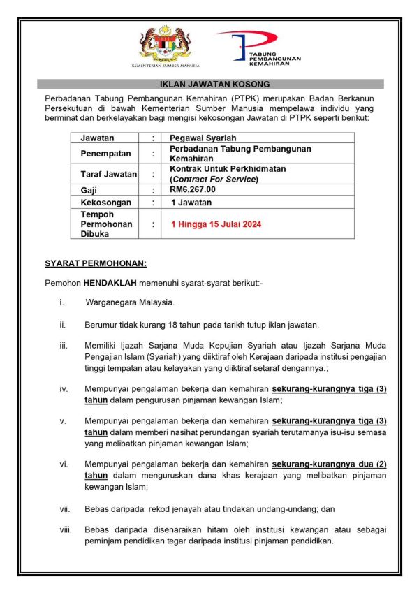 Kini Iklan Jawatan Kosong Perbadanan Tabung Pembangunan Kemahiran (PTPK) Like serta Ikut Facebook Kami, follow Chanel WhatsApp Jawatan Kosong & Telegram Portal SPA9 untuk capaian pantas kekosongan jawatan daripada kami sekarang.