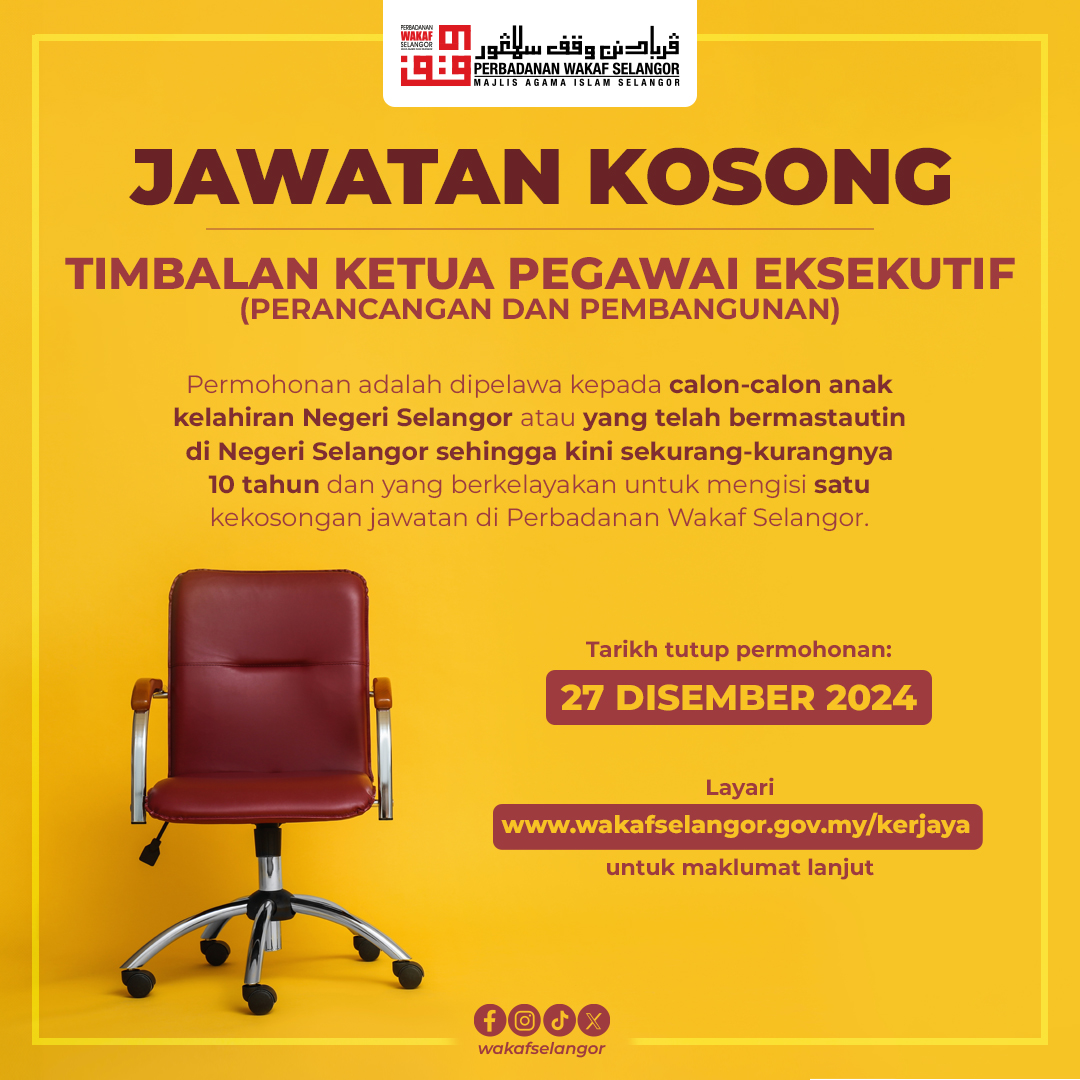 Kini Iklan Jawatan Kosong Perbadanan Wakaf Selangor (PWS), MAIS Like serta Ikut Facebook Kami, follow Chanel WhatsApp Jawatan Kosong & Telegram Portal SPA9 untuk capaian pantas kekosongan jawatan daripada kami sekarang. Klik Iklan Jawatan