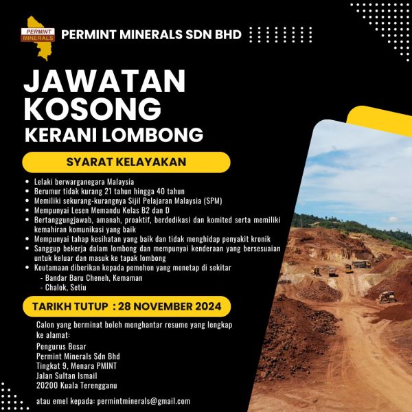 Kini Iklan Jawatan Kosong Permint Minerals Sdn Bhd Like serta Ikut Facebook Kami, follow Chanel WhatsApp Jawatan Kosong & Telegram Portal SPA9 untuk capaian pantas kekosongan jawatan daripada kami sekarang. Klik Jawatan Disini