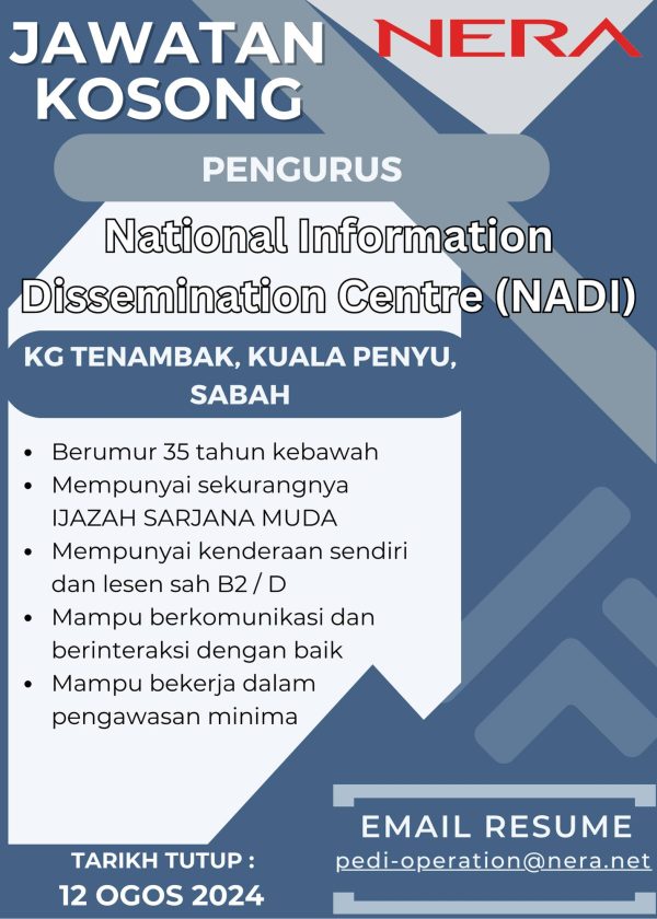 Kini Iklan Jawatan Kosong Pusat Sebaran Maklumat Nasional (NADI) Like serta Ikut Facebook Kami, follow Chanel WhatsApp Jawatan Kosong & Telegram Portal SPA9 untuk capaian pantas kekosongan jawatan daripada kami sekarang.