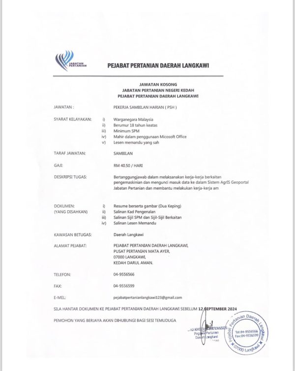 Kini Iklan Jawatan Kosong Terkini Jabatan Pertanian Malaysia Like serta Ikut Facebook Kami, follow Chanel WhatsApp Jawatan Kosong & Telegram Portal SPA9 untuk capaian pantas kekosongan jawatan daripada kami sekarang. Klik Jawatan Disini
