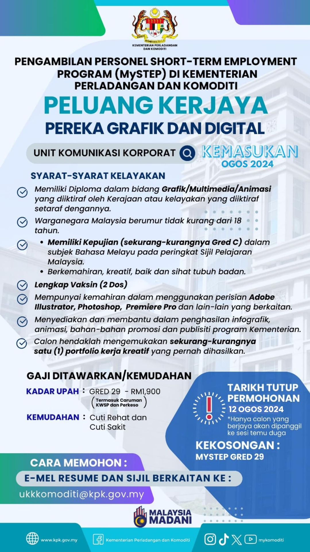 Kini Iklan Jawatan Kosong Terkini Kementerian Perladangan dan Komoditi (KPK) Like serta Ikut Facebook Kami, follow Chanel WhatsApp Jawatan Kosong & Telegram Portal SPA9 untuk capaian pantas kekosongan jawatan daripada kami sekarang. Klik Jawatan Disini