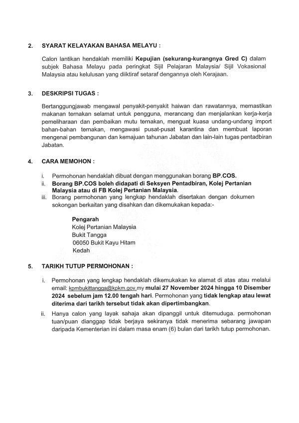 Kini Iklan Jawatan Kosong Terkini Kolej Pertanian Malaysia Klik Iklan Jawatan Like serta Ikut Facebook Kami, follow Chanel WhatsApp Jawatan Kosong & Telegram Portal SPA9 untuk capaian pantas kekosongan jawatan daripada kami sekarang.