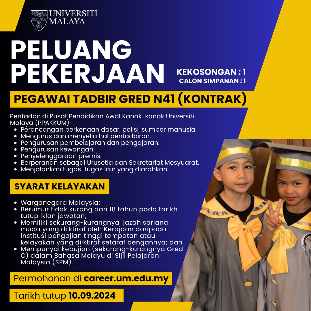 Kini Iklan Jawatan Kosong Terkini Universiti Malaya Like serta Ikut Facebook Kami, follow Chanel WhatsApp Jawatan Kosong & Telegram Portal SPA9 untuk capaian pantas kekosongan jawatan daripada kami sekarang.