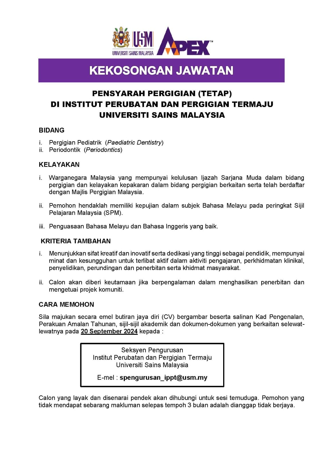 Kini Iklan Jawatan Kosong Terkini Universiti Sains Malaysia (USM) Like serta Ikut Facebook Kami, follow Chanel WhatsApp Jawatan Kosong & Telegram Portal SPA9 untuk capaian pantas kekosongan jawatan daripada kami sekarang.
