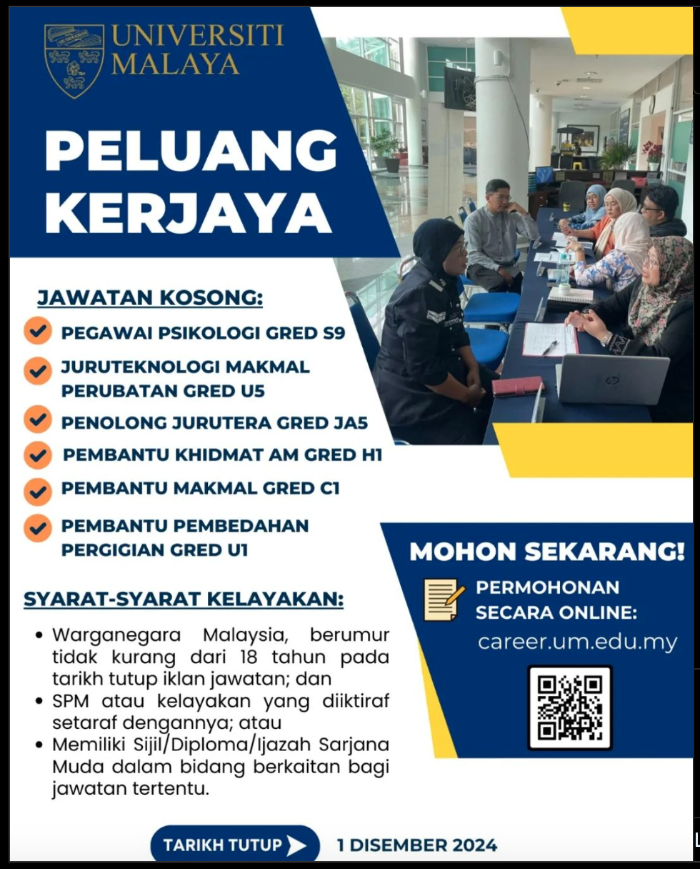 Kini IKlan Jawatan Kosong Universiti Malaya Like serta Ikut Facebook Kami, follow Chanel WhatsApp Jawatan Kosong & Telegram Portal SPA9 untuk capaian pantas kekosongan jawatan daripada kami sekarang.