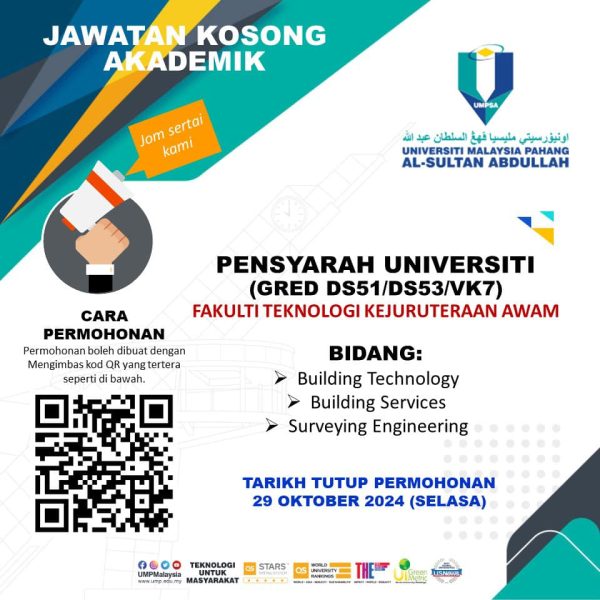 Kini Iklan Jawatan Kosong Universiti Malaysia Pahang (UMP) Like serta Ikut Facebook Kami, follow Chanel WhatsApp Jawatan Kosong & Telegram Portal SPA9 untuk capaian pantas kekosongan jawatan daripada kami sekarang. Klik Jawatan Disini
