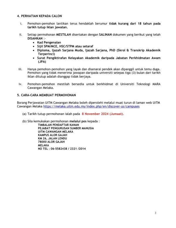 Kini Iklan Jawatan Kosong Universiti Teknologi MARA (UiTM) Cawangan Melaka Like serta Ikut Facebook Kami, follow Chanel WhatsApp Jawatan Kosong & Telegram Portal SPA9 untuk capaian pantas kekosongan jawatan daripada kami sekarang. Klik Jawatan Disini
