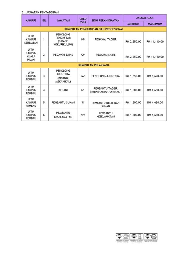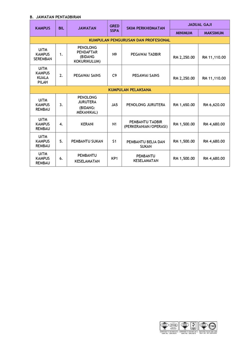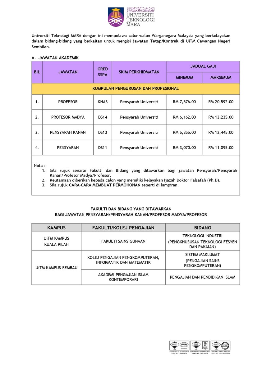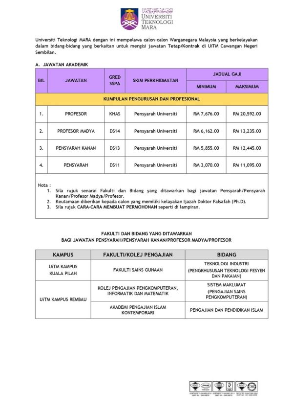 Kini Iklan Jawatan Kosong Universiti Teknologi MARA (UiTM) Negeri Sembilan Like serta Ikut Facebook Kami, follow Chanel WhatsApp Jawatan Kosong & Telegram Portal SPA9 untuk capaian pantas kekosongan jawatan daripada kami sekarang. Klik Iklan Jawatan