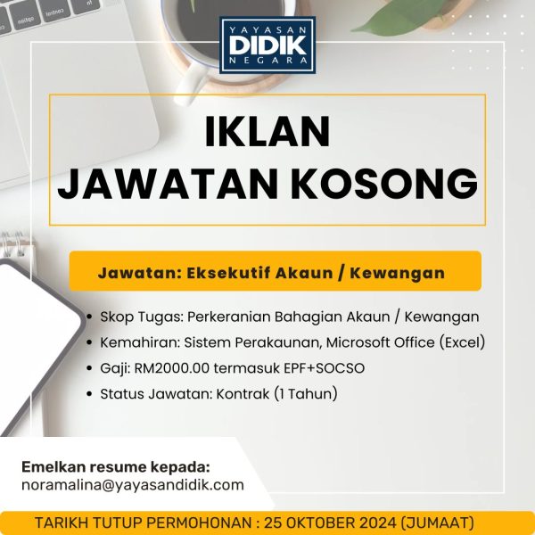 Kini Iklan Jawatan Kosong Yayasan Didik Negara Like serta Ikut Facebook Kami, follow Chanel WhatsApp Jawatan Kosong & Telegram Portal SPA9 untuk capaian pantas kekosongan jawatan daripada kami sekarang.