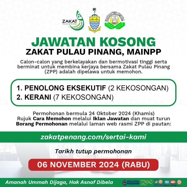 Kini Iklan Jawatan Kosong Zakat Pulau Pinang Like serta Ikut Facebook Kami, follow Chanel WhatsApp Jawatan Kosong & Telegram Portal SPA9 untuk capaian pantas kekosongan jawatan daripada kami sekarang. Klik Jawatan Disini