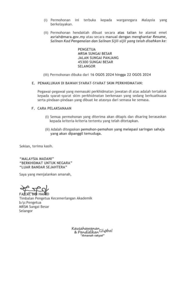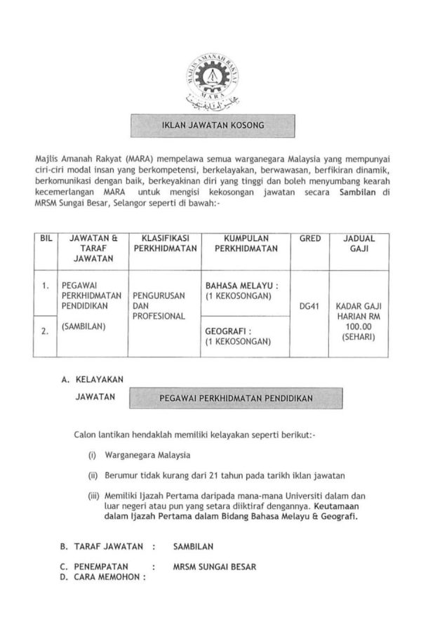 Kini Iklan Jawatan MRSM Sungai Besar Like serta Ikut Facebook Kami, follow Chanel WhatsApp Jawatan Kosong & Telegram Portal SPA9 untuk capaian pantas kekosongan jawatan daripada kami sekarang.