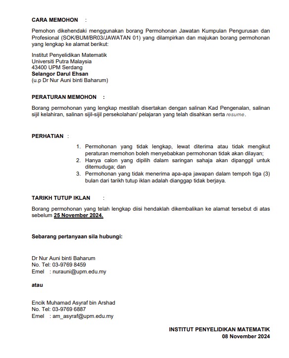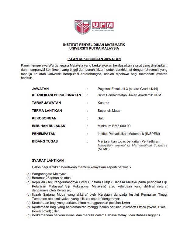 Kini Iklan Universiti Putra Malaysia (UPM) Klik Iklan Jawatan Like serta Ikut Facebook Kami, follow Chanel WhatsApp Jawatan Kosong & Telegram Portal SPA9 untuk capaian pantas kekosongan jawatan daripada kami sekarang.
