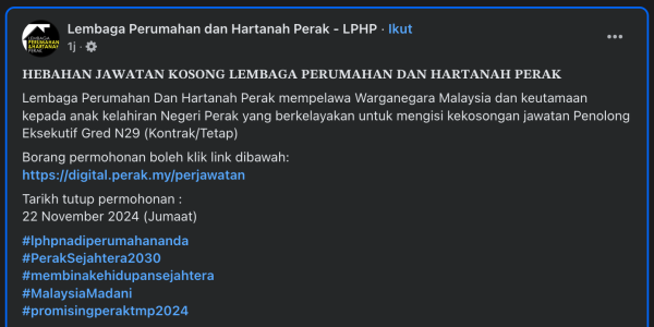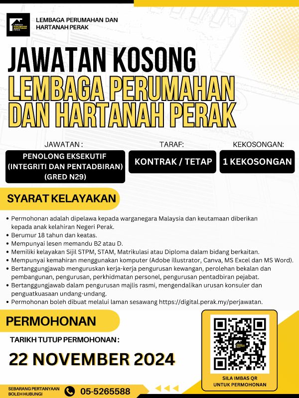 Kini Jawatan Lembaga Perumahan Dan Hartanah Perak Like serta Ikut Facebook Kami, follow Chanel WhatsApp Jawatan Kosong & Telegram Portal SPA9 untuk capaian pantas kekosongan jawatan daripada kami sekarang. Iklan Jawatan Disini
