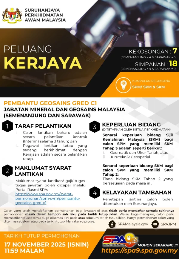 KiniIklan Jawatan Jabatan Mineral Dan Geosains Malaysia (Semenanjung Dan Sarawak) Like serta Ikut Facebook Kami, follow Chanel WhatsApp Jawatan Kosong & Telegram Portal SPA9 untuk capaian pantas kekosongan jawatan daripada kami sekarang. Klik Iklan Jawatan
