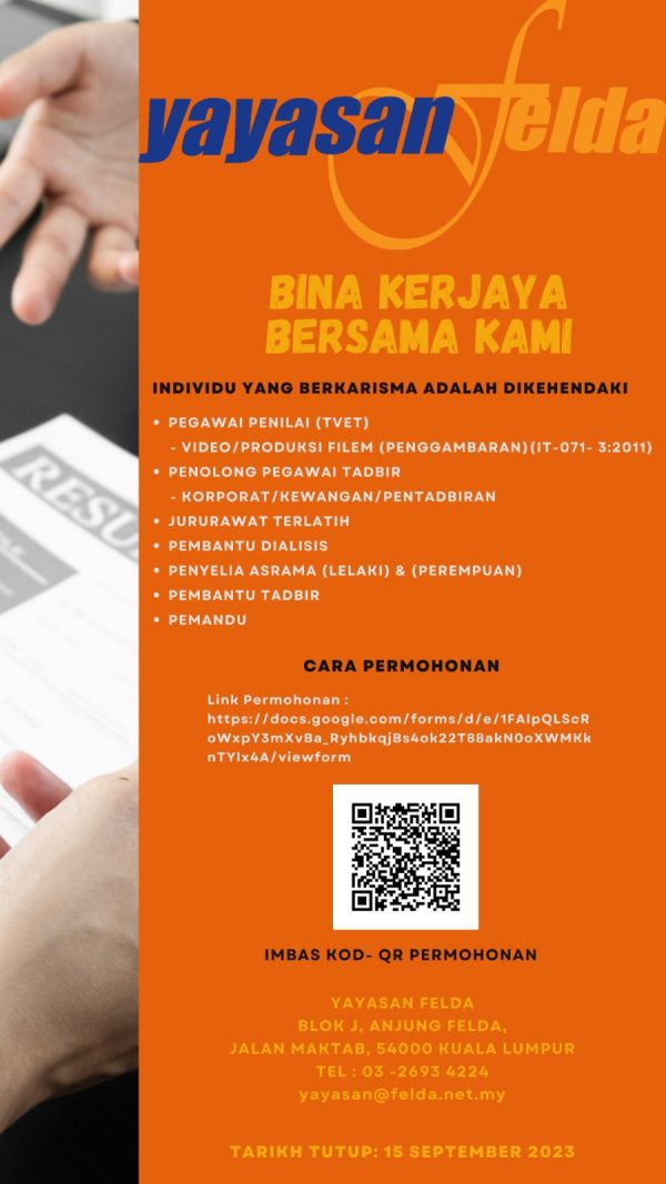 Klik Jawatan Yayasan Felda Like serta Ikut Facebook Kami, follow Chanel WhatsApp Jawatan Kosong & Telegram Portal SPA9 untuk capaian pantas kekosongan jawatan daripada kami sekarang. Klik Jawatan Disini