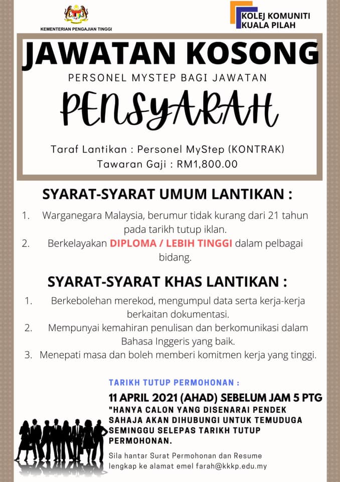 Jawatan Kosong Kolej Komuniti Kuala Pilah Like serta Ikut Facebook Kami, follow Chanel WhatsApp Jawatan Kosong & Telegram Portal SPA9 untuk capaian pantas kekosongan jawatan daripada kami sekarang.