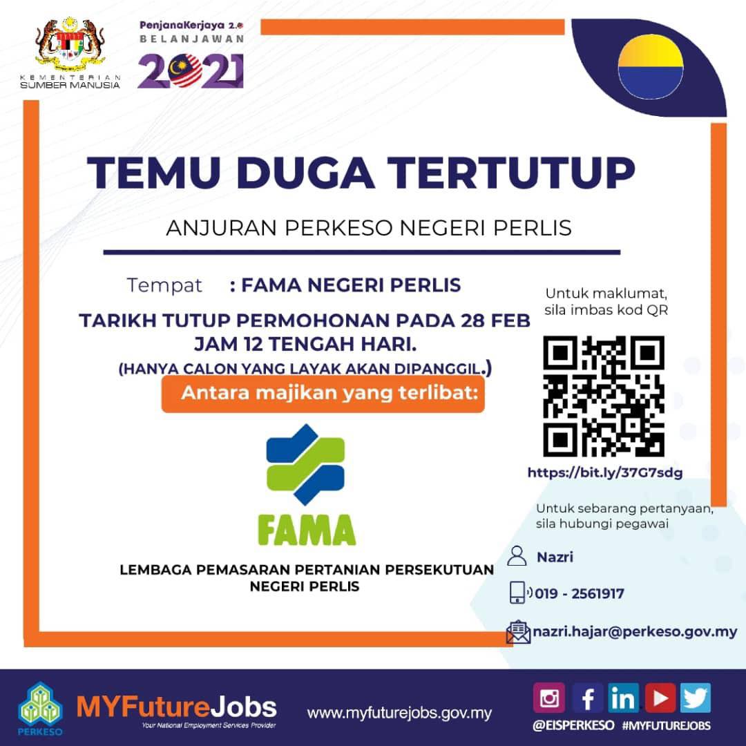 Jawatan Kosong Lembaga Pemasaran Pertanian Persekutuan (FAMA) Like serta Ikut Facebook Kami, follow Chanel WhatsApp Jawatan Kosong & Telegram Portal SPA9 untuk capaian pantas kekosongan jawatan daripada kami sekarang.