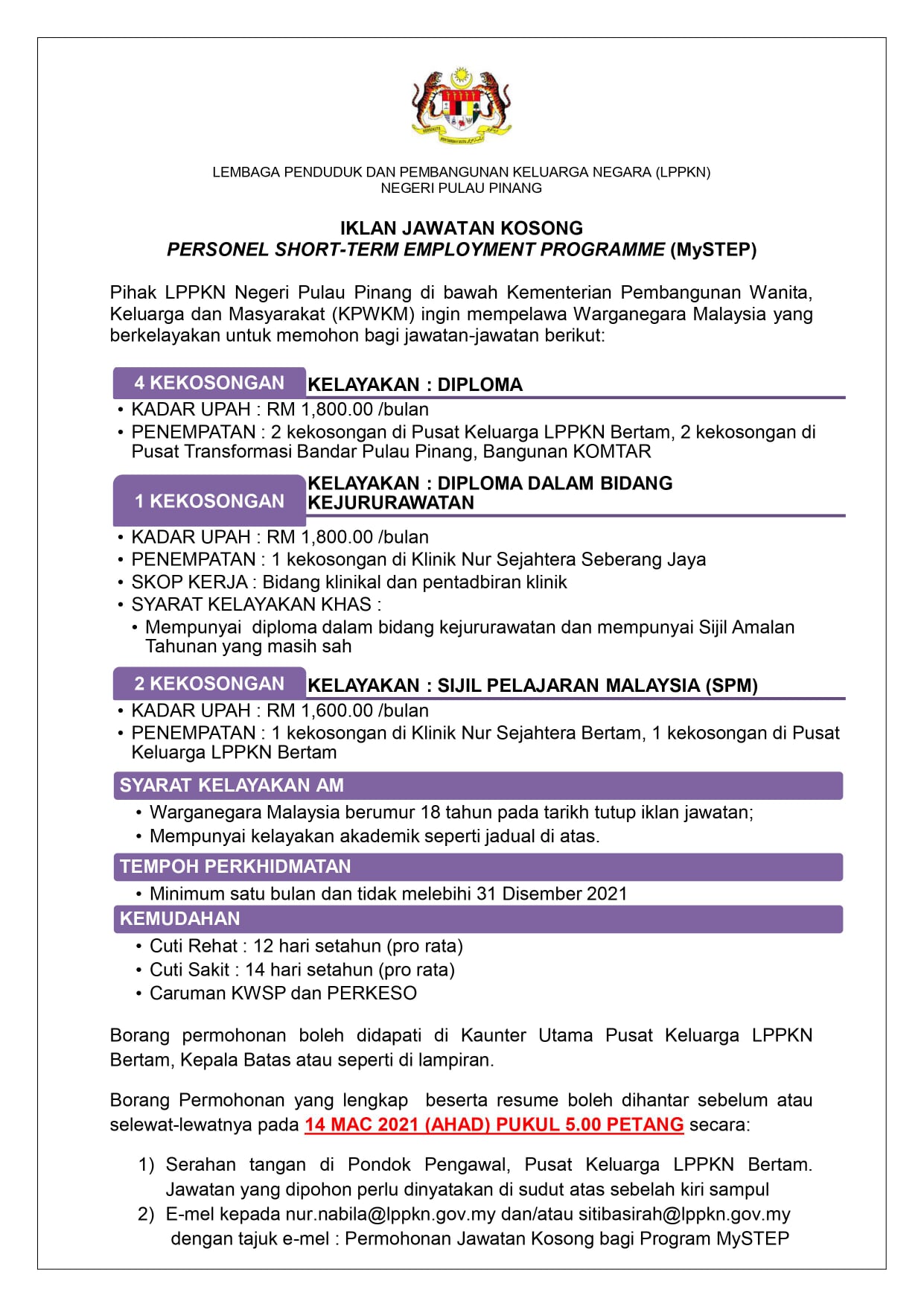 Jawatan Kosong Lembaga Penduduk Dan Pembangunan Keluarga Negara (LPPKN)