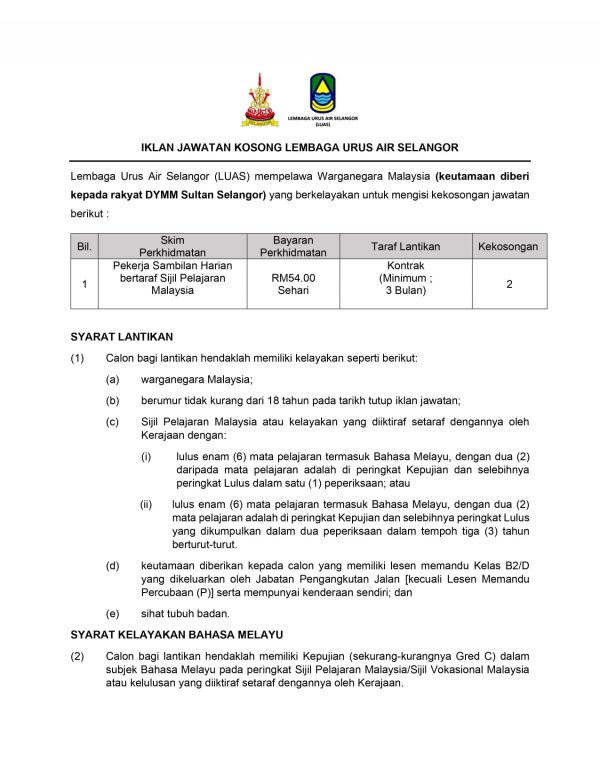 Jawatan Kosong Lembaga Urus Air Selangor (LUAS) Like serta Ikut Facebook Kami, follow Chanel WhatsApp Jawatan Kosong & Telegram Portal SPA9 untuk capaian pantas kekosongan jawatan daripada kami sekarang.