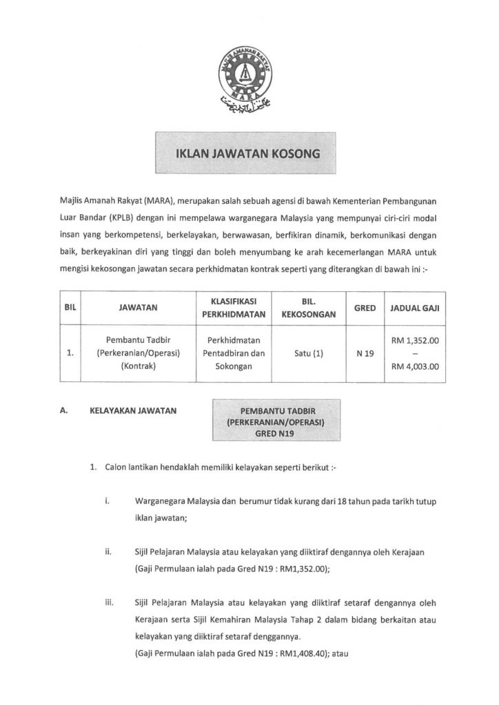 Jawatan Kosong Majlis Amanah Rakyat (MARA) Like serta Ikut Facebook Kami, follow Chanel WhatsApp Jawatan Kosong & Telegram Portal SPA9 untuk capaian pantas kekosongan jawatan daripada kami sekarang.