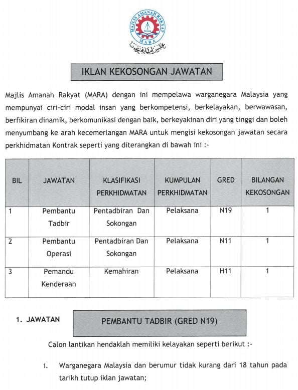 Jawatan Kosong Majlis Amanah Rakyat (MARA)