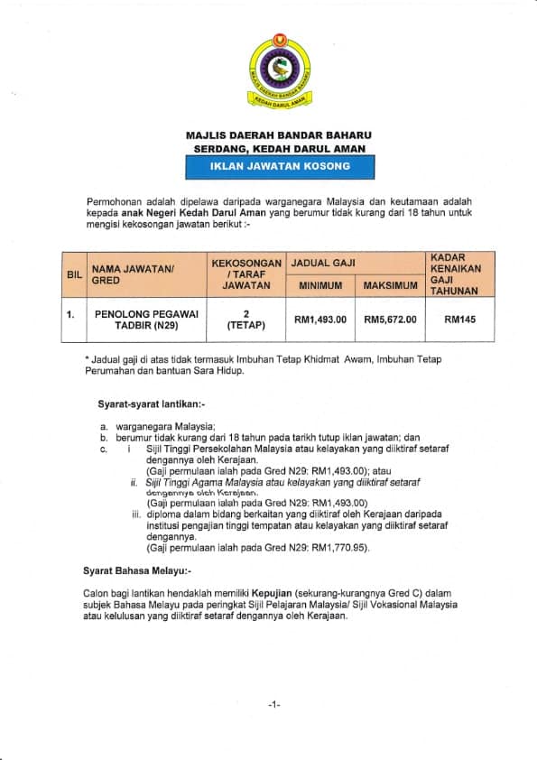 Jawatan Kosong Majlis Daerah Bandar Baharu Serdang
