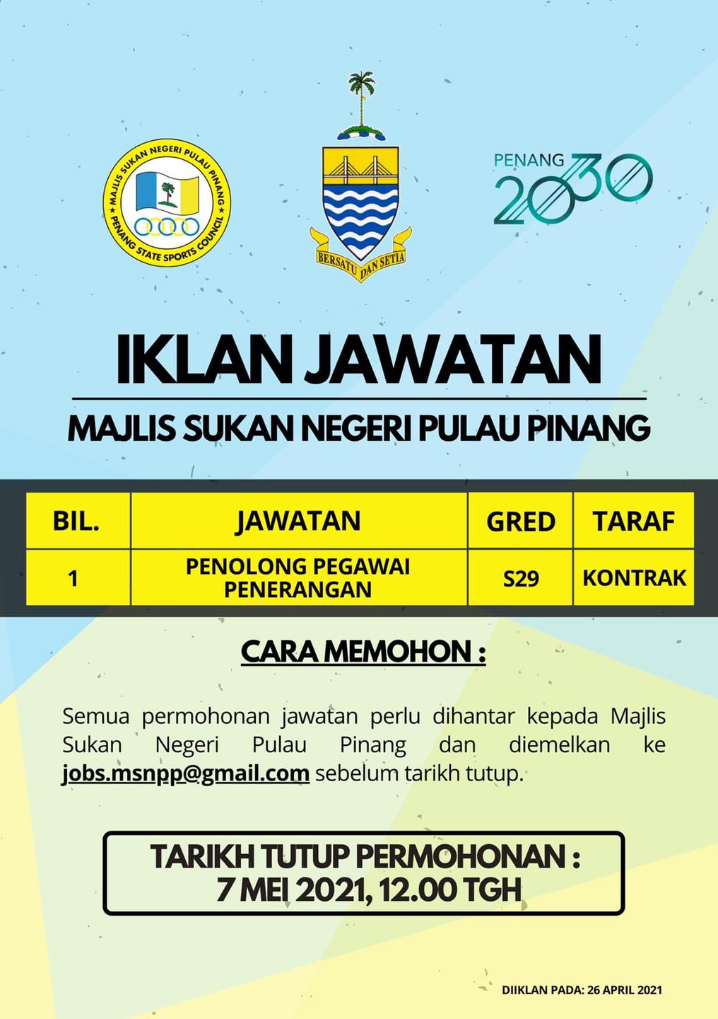 Jawatan Kosong Majlis Sukan Negeri Pulau Pinang Like serta Ikut Facebook Kami, follow Chanel WhatsApp Jawatan Kosong & Telegram Portal SPA9 untuk capaian pantas kekosongan jawatan daripada kami sekarang.