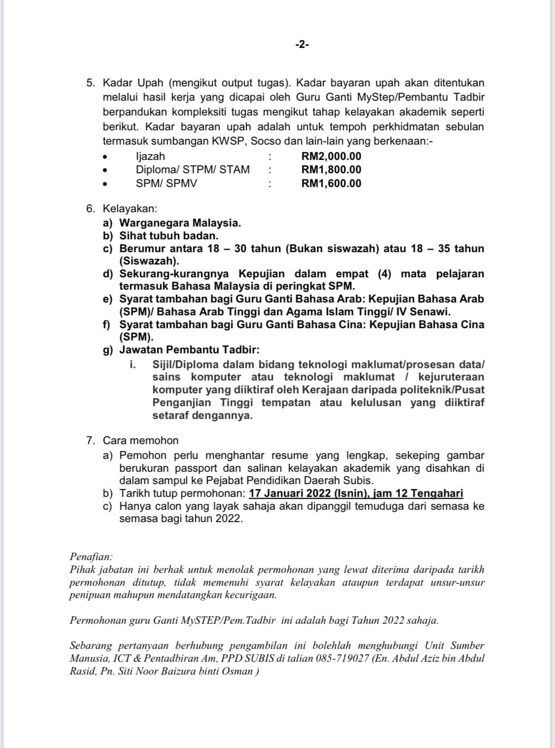Iklan Jawatan Pejabat Pendidikan Daerah Subis Like serta Ikut Facebook Kami, follow Chanel WhatsApp Jawatan Kosong & Telegram Portal SPA9 untuk capaian pantas kekosongan jawatan daripada kami sekarang.